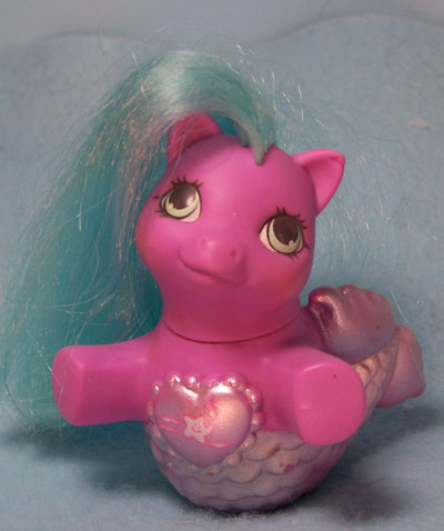 One sunny day, the ponies found large, rainbow-striped seashells lying on the beach. "Maybe big pearls are in them," the ponies mused, and they asked the shells to let them peek inside. The shells slowly opened, and the ponies gasped with surprise. Curled up in each shell was a Fancy Mermaid Pony, shimmering like a pearl! The adorable babies wiggled their tails and splashed into the ocean, where they swam and played with the delighted ponies, who were pleased to meet such wonderful friends from the sea.