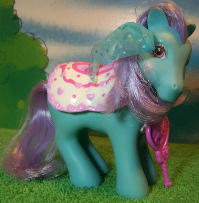 Secret Beauty was released in the US in 1991. She is part of the Secret Surprise Pony Set. In the UK Shimmering Secret was released in 1991.